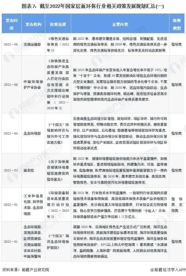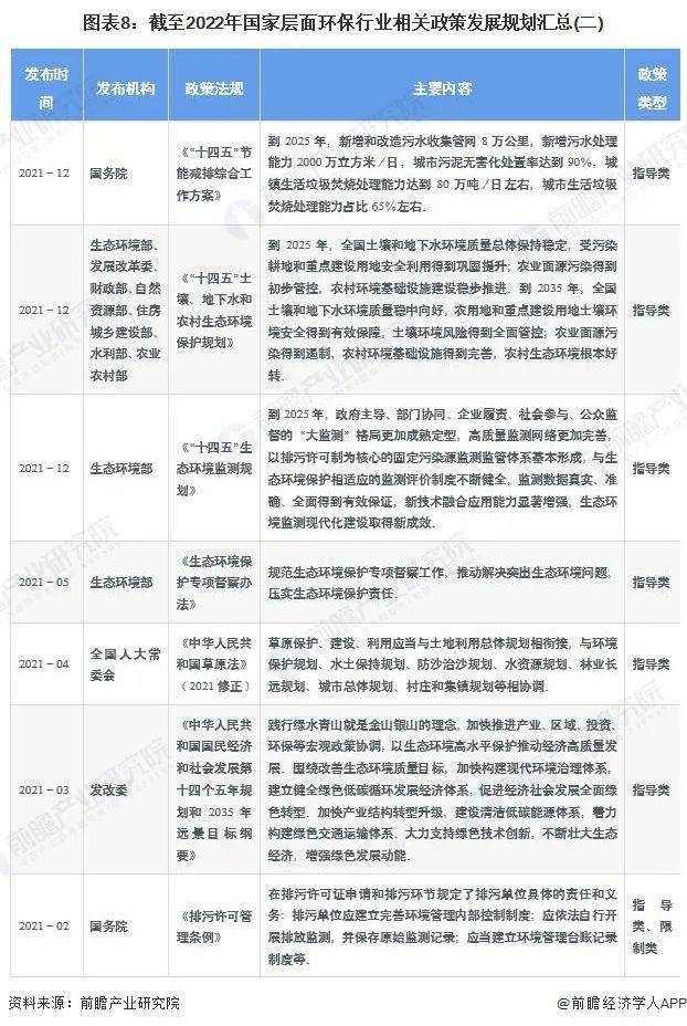 当前,我国环保行业大监管格局已基本形成,新的格局下,环保行业已从政策播种时代进入到全面的政策深耕时代,涉及水、土、气、固废处理全方位的政策法规日趋完善。“十四五”时期,进入了以降碳为重点战略方向、推动减污降碳协同增效、促进经济社会发展全面绿色转型、实现生态环境质量改善由量变到质变的关键时期。据此,有关部门也推出了多项政策,诸如“全国碳排放权交易市场”、“蓝天保卫战”、“黑臭水体整治环境保护专项行动”以及“无废城市”等,全面助力生态环境保护,促进经济社会发展全面绿色转型。截至2022年11月9日,我国环保行业重点发展政策汇总如下: