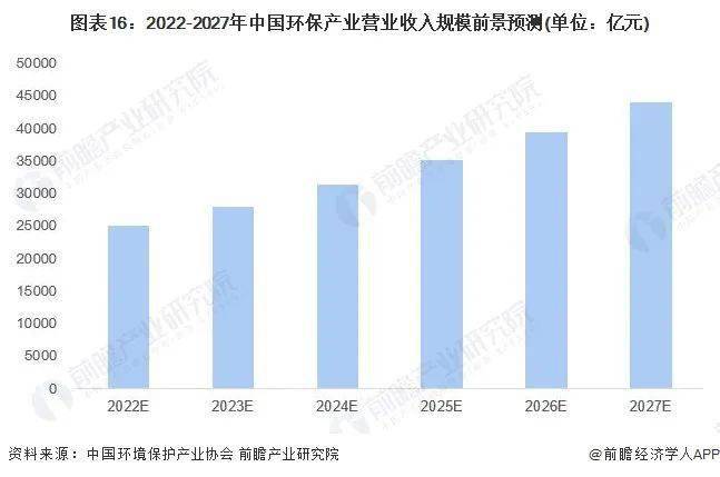 前瞻根据近年来中国环保产业发展现状及发展趋势,结合《行动纲要》中提出的环保产业发展目标,初步预测2022-2027年间中国环保产业营业收入年复合增长率将达到12%,至2027年末中国环保产业营业收入规模有望突破44000亿元。