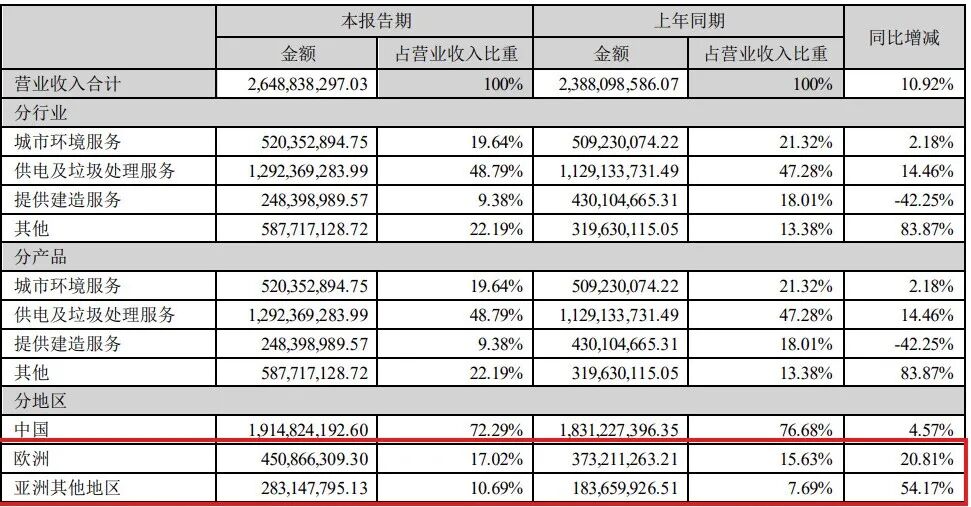 经历过普遍的大规模业务拓展和项目扩容,环保产业的发展动力由依靠政策和投资驱动转向立足于市场和技术驱动。从半年度报告中能够看出,部分企业选择“轻装上阵”,“集中和减负”并行。从结果上来看,也带来了不错的效果。“集中”,即回归核心业务,向深挖掘专业赛道的更多增长曲线,如增强一体化服务、运营水平,污染物资源化利用等。津膜科技在今年上半年扭亏为盈,净利润较上年同期增长 113.03%,其半年度报告中提到“公司继续加大以分离膜、HPS 高效澄清池为核心的产品、装备市场开拓、订单签约及发货,分离膜及水处理设备销售收入较上年同期增长;加快以分离膜及水处理系统集成为主的工程项目发签约及实施,水处理工程收入较上年同期增长。”博世科今年上半年进一步优化主营业务结构,在市政工程类项目选择上,集中优势资源在其最核心的主营业务:工业板块。依托水环境治理核心技术及专利设备,中标合同金额约 3.44 亿元的“西明江、凤凰江示范段建设工程项目”。首创环保这类综合治理环保企业也做出了同样的调整,提到在报告期内,以“进、退、守、试”业务组合,形成了以解决方案牵引多元发展的业务设计思路,对应解决方案升级路径,将业务分类为资产类业务、服务类业务、技术产品类业务、其他业务,组成新业务组合,精准释放发展动能。今年上半年,不少环保企业都卸下“求大”负担,倾向于“减负”路线,这体现在项目规模、业务扩张等方面。项目规模上,一些环保企业的选择发生了改变,比起大型规模、大额标的,更多倾向具有周期短、回款快、稳定性高的项目。尤其是在PPP项目上,多家企业在半年度报告中提到了收缩、严控、组织回款等布局调整。博世科在半年度报告中提到,针对PPP项目的调整,“逐步退出一些边际不清,或因业主方原因长期无法实施或长期无法进入运营的项目,进一步优化公司业务和负债结构,减轻资金压力”。聚光科技也同样进行了对于PPP项目的专门性举措,一是“在停止签订 PPP 等新合同的基础上,差异化控制已签订的此类项目之推进”;二是“为集中公司资源,组织专门团队处置剥离部分 PPP 项目”。业务规模上,相较于前些年的“高歌进取”,更多企业选择了观望现状、暂停扩张。例如,德创环保由于废盐收储及危废填埋收储价格持续下滑,企业的多项危废治理业务处于亏损状态,所以“基于成本和风险考虑,暂缓危废业务新的扩张”。“内卷”已经是环保行业里人人都会提到的词了。如果将环保行业比作一个射击场,靶子越来越少,而仅剩的靶子上也已经空间不足,但也有人在寻找新的射击场,提前一步瞄准更多靶子。格林美2024年上半年创营业收入和净利润均创历史新高,实现营业收入 173.38 亿元,同比增长 33.99%, 实现归属于上市公司股东的净利润 7.01 亿元,同比增长 69.70%。其半年度报告中将“踏浪出海,突围新机遇,全球产业链合作,推动产能大释放”作为报告期经营亮点的首句,强调了全国供应链的重要性和潜力。率先布局海外市场的中国环保企业已获得的成果,也验证了海外市场是当前非常广阔的增量空间。根据中国天楹的半年度报告,海外业务占营业收入比重增幅已远超国内业务,增长潜力值得期待。第四,涉足新兴行业,实现发展的更多可能性。