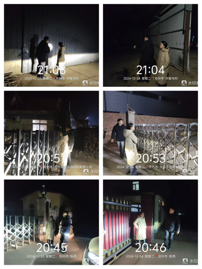 ● 12月24日晚,镇长杨炎炎、党委副书记刘宁,夜间对企业进行巡查,检查企业橙警期间落实减排措施情况。