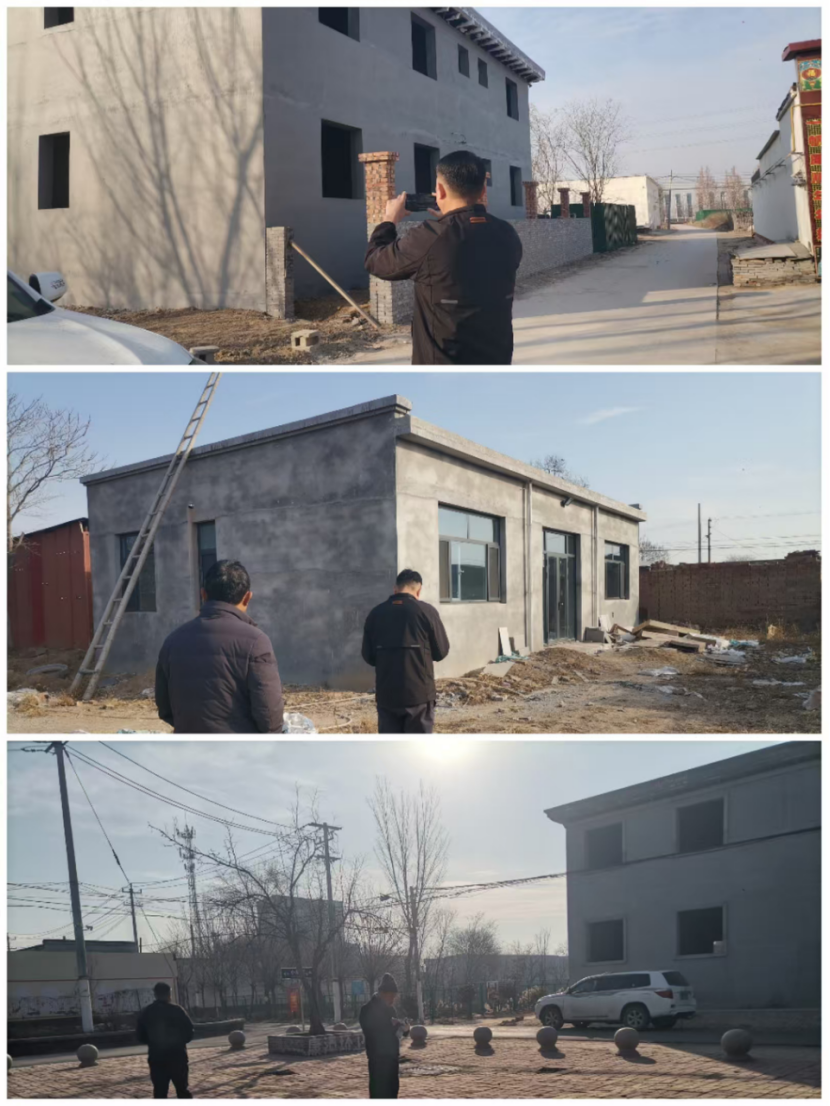 ●12月24日上午,武装部长田志广、党建办主任张景芳到片区进行房屋建筑核查,公厕排查,永久基本农田复耕,实地查看衔接资金建设项目落实情况。