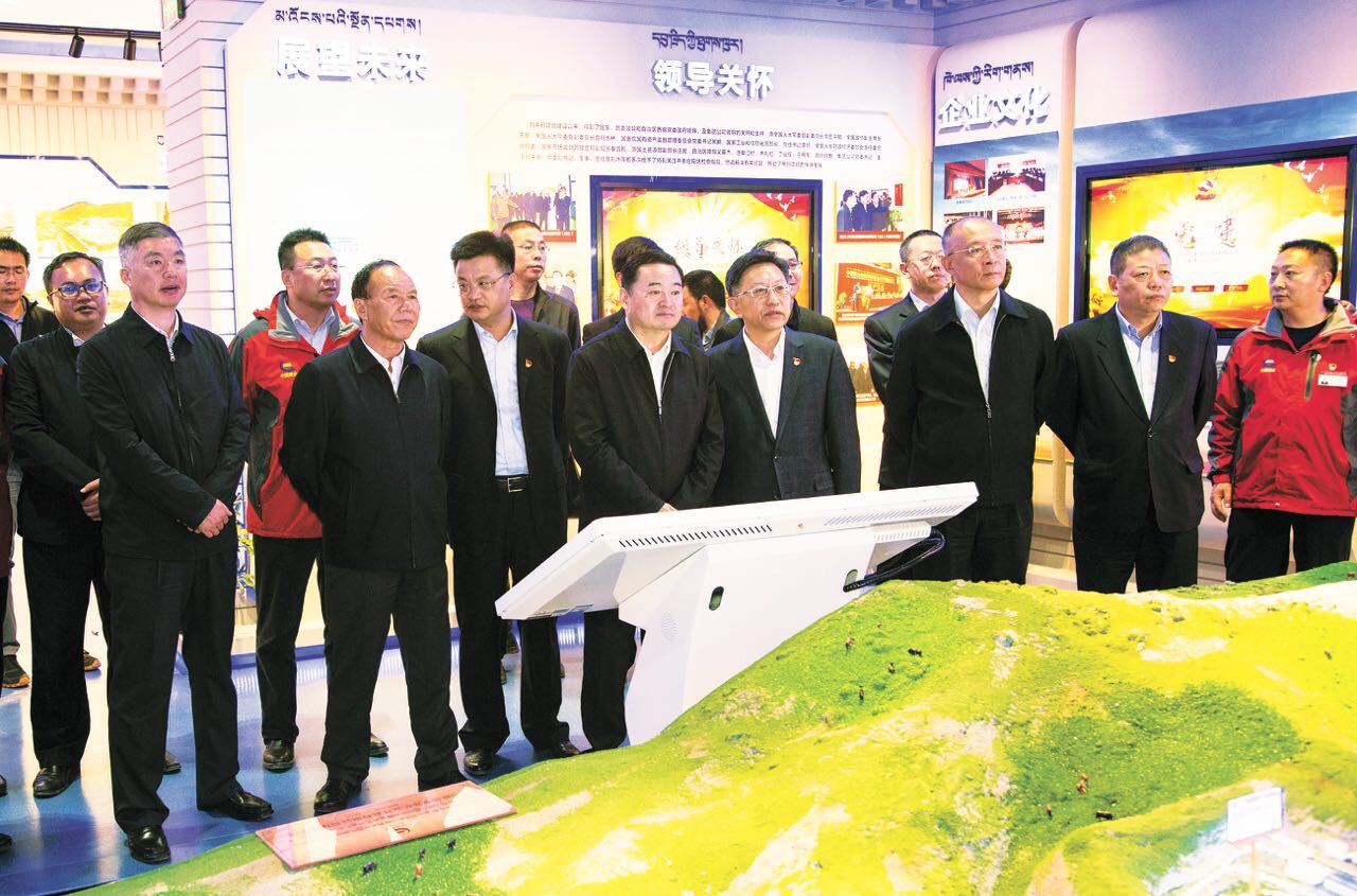 ▲国务院国资委党委书记郝鹏(前排右五)赴西藏华泰龙矿业开发有限公司调研。