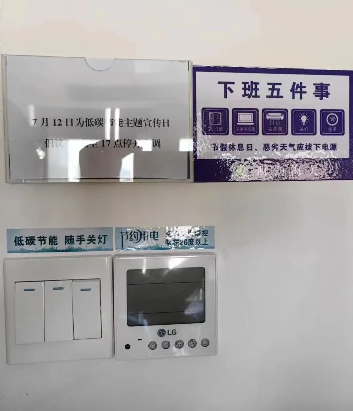 在7月12日全国低碳日这天,关区全面开展能源资源紧缺体验活动,通过关闭公共区域照明、停开部分电梯、空调制冷缩短一小时、减少纸张使用、会议鼓励自带水杯等方式,让干部职工切实感受到能源资源紧缺给工作、生活造成的影响和带来的不变,增强能源资源忧患意识。