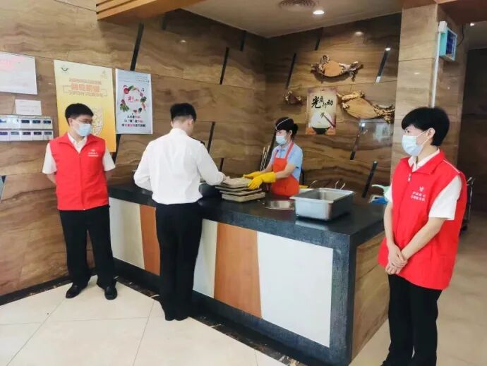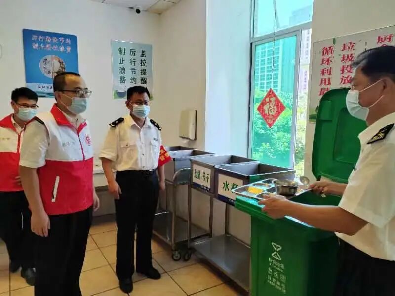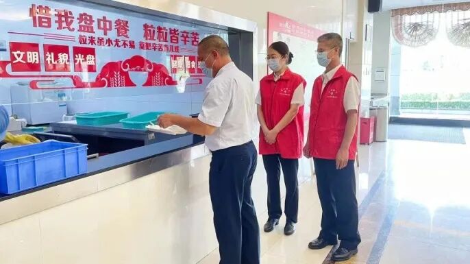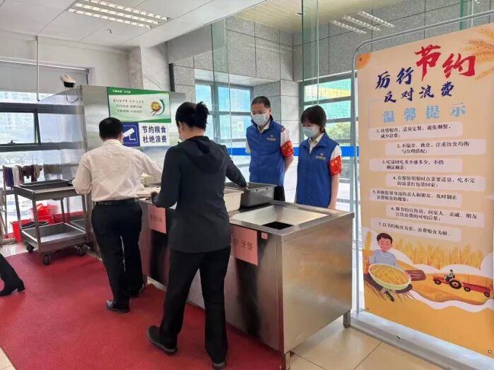 坚决制止餐饮浪费,广泛开展光盘行动,在食堂区域张贴提醒标识,通过视频监督浪费行为,并设立光盘督导员,扎实推进反食品浪费工作。