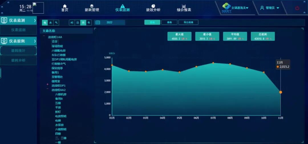 机关本级、文锦渡海关建设建筑节能运维管理服务平台,实现水电计量分户分区分项计量,具备实时监测、统计分析、异常预警等功能,成为节能管理的重要抓手。