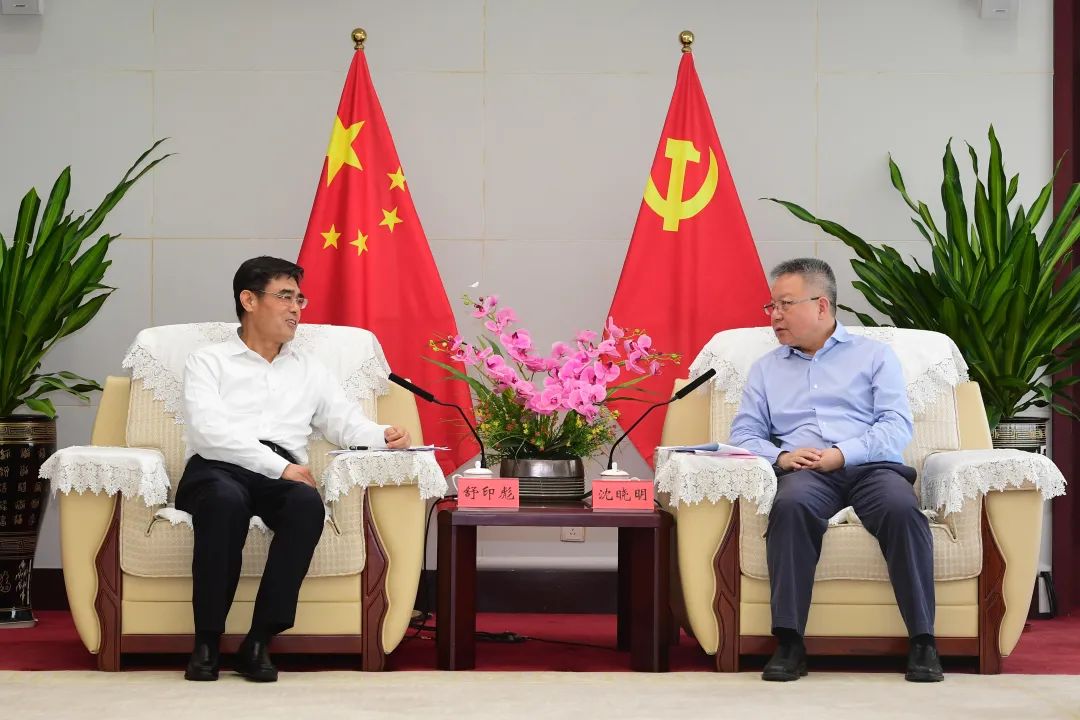 沈晓明、冯飞对舒印彪、邓建玲一行的到来表示欢迎,对华能长期以来给予海南经济社会发展的大力支持表示感谢,并向昌江核电二期开工建设表示祝贺。沈晓明介绍了“十三五”期间海南经济社会发展有关情况。他指出,海南坚持以习近平总书记重要讲话和重要批示指示精神为指导,全面深化改革开放,下大气力调优结构,经济增长动能有效转换,实现了自贸港建设顺利开局。他说,央企已成为海南自贸港建设的重要力量,华能在海南布局了大量项目和业务,形成了在琼综合性整体发展的良好态势。“十四五”期间,海南欢迎华能进一步加大在琼投资发展力度,共享自贸港发展新机遇。希望双方在去年签署的战略合作协议基础上,依托海南资源禀赋,持续深化清洁能源领域合作,进一步拓展高端制造业、工业旅游、新型国际贸易等领域合作,不断推动海南产业转型升级,在实现碳达峰、碳中和目标中走在全国前列。海南将全力营造法治化、国际化、便利化的一流营商环境,全力支持华能在琼发展。冯飞就“十四五”华能在琼打造绿色低碳发展新标杆、推动海南构建生态环境世界最优的自贸港提出要求。