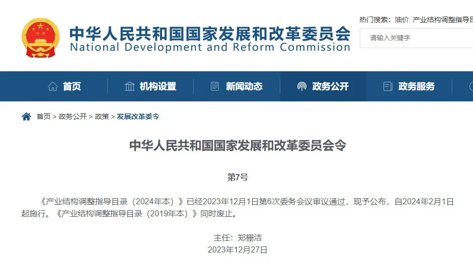 12月29日,国家发改委发布《产业结构调整指导目录(2024年本)》。《目录(2024 年本)》由鼓励、限制和淘汰三类目录组成。鼓励类主要是对经济社会发展有重要促进作用的技术、装备及产品,有利于自然资源节约集约利用和产业绿色低碳转型,助力碳达峰碳中和,其中,涉及环保行业的鼓励类有13大项,包括大气污染物治理和碳减排、生态环境修复和资源利用、城镇污水垃圾处理等。