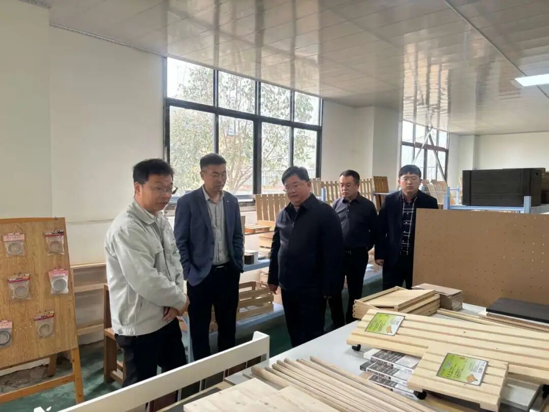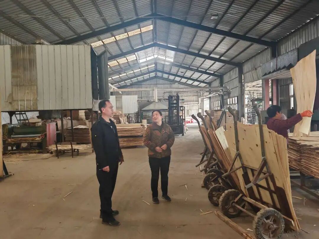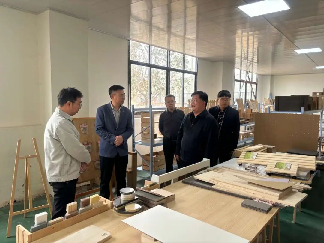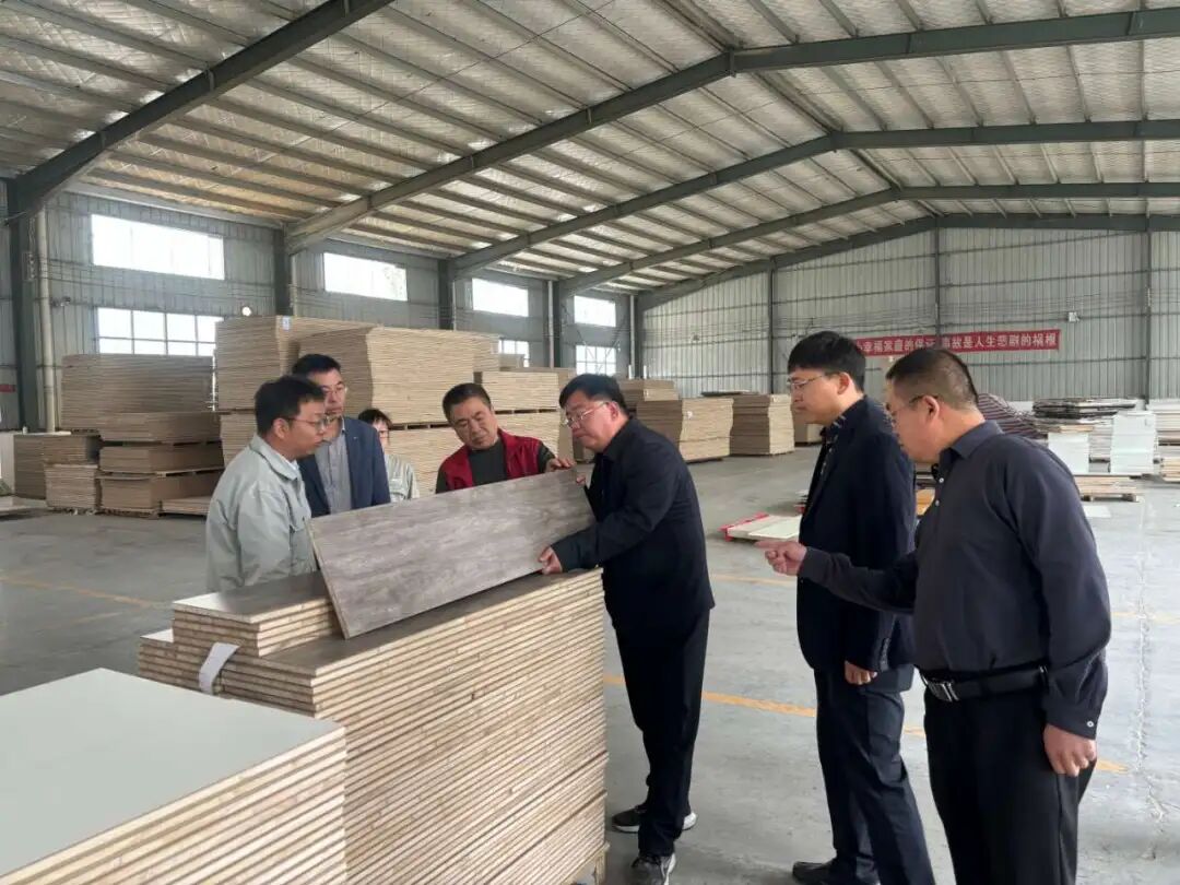 县委常委、堌阳镇党委书记王旭鹤、佳音王董事长王福、党委副书记丁晓东到闫楼乡调研音板加工企业。
