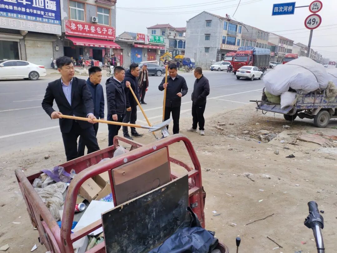 第六管区区长程相杰、副区长范俊山带领包村干部、村两委干部到闫坝路开展路域环境提升工作。