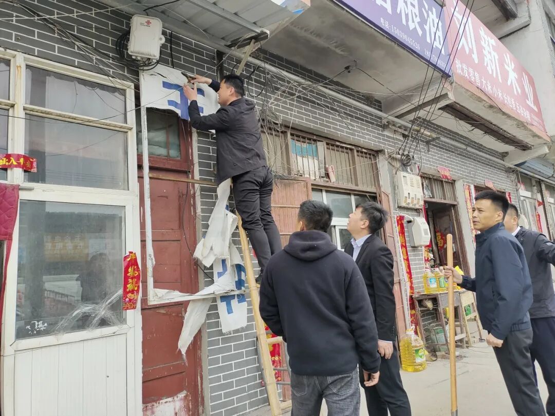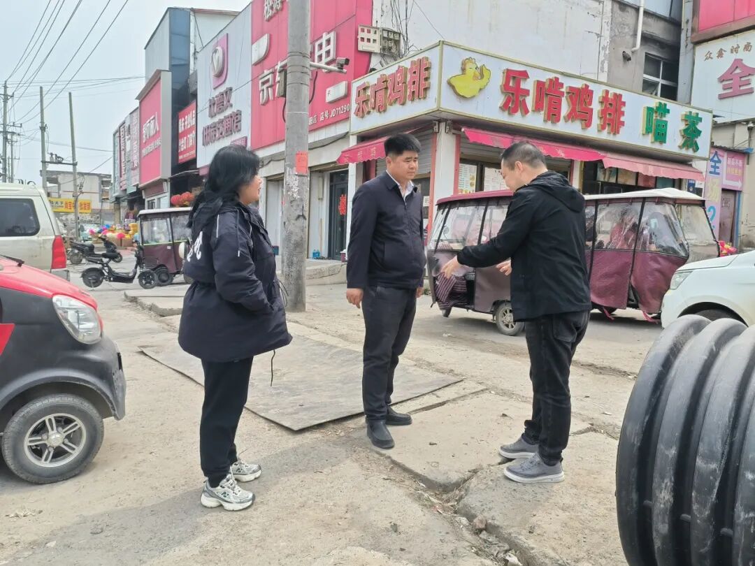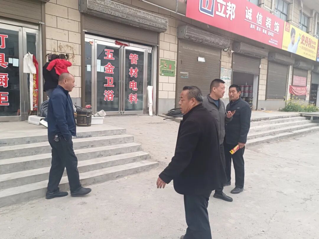 党委委员副镇长张帅彪到南环路召集商户共同商讨路域提升工作方案,并对其中细节问题进行研判。