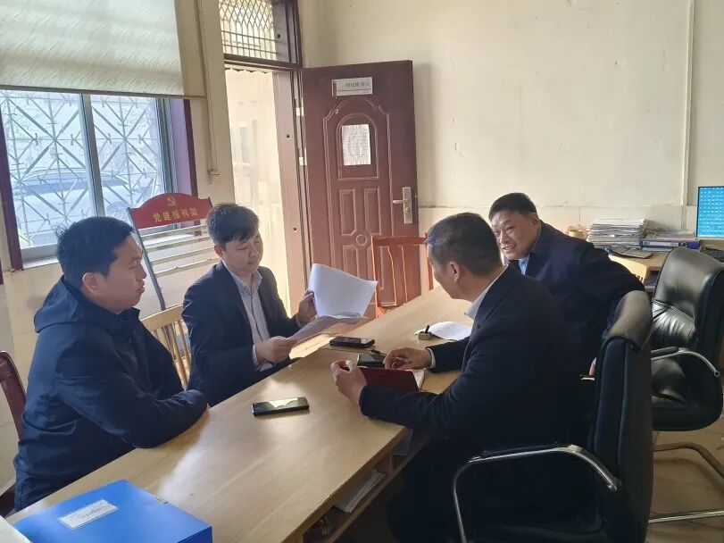 政法委员赵振朝、纪委书记宋星曰、副镇长苏颂喜、副镇长孔维慧到秦寨村调解群众土地纠纷。