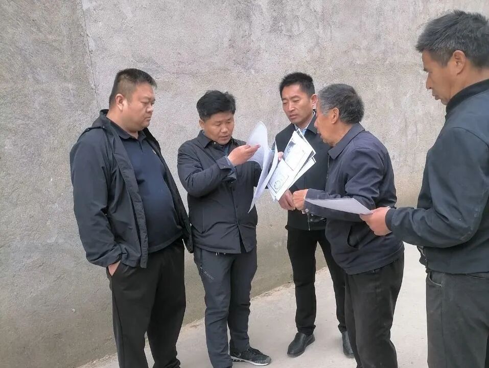 政法委员赵振朝、副镇长苏颂喜、副镇长孔维慧到吕堂村调解群众土地纠纷。