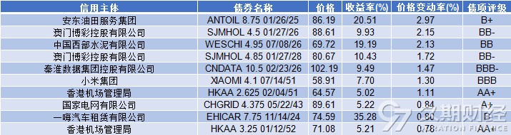 高收益市场表现疲软,虽然“认房不用认贷”政策出台,但市场并不买账。碧桂园、万达、远洋等市场关注重点,仍处于低位震荡中;金科股份未能按期偿付境内债本息,相关美元债震荡下行;路劲逆势上涨,相关美元债均出现了不同程度的上涨。