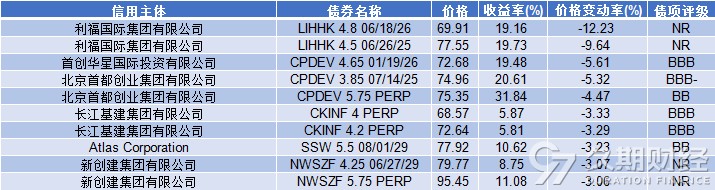 除前述2只日元债券外,城投板块其余7只境外债的息票率处于4.7%-8.0%区间,鲁商集团发行1只3年期美元债,规模1.3亿美元,最终定价8.00%,为本周定价最高的债券。