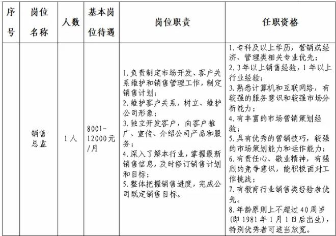 一、招聘人员基本要求