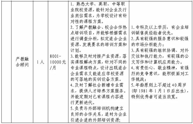 二、招聘岗位、人数及任职资格