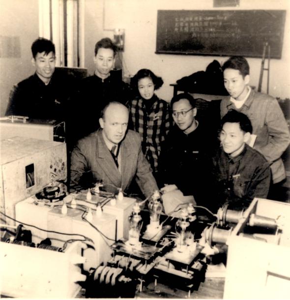 王祖耆教授(右三);筹建成电时,王祖耆第一批来到成都,这张照片就诞生于这段时期