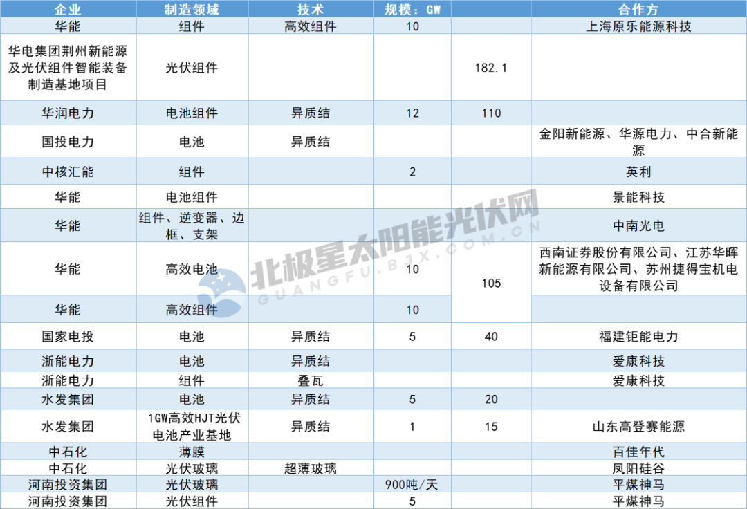 五大、四小发电集团、中节能、中建材、中车等正在加速在光伏制造领域的参与程度。