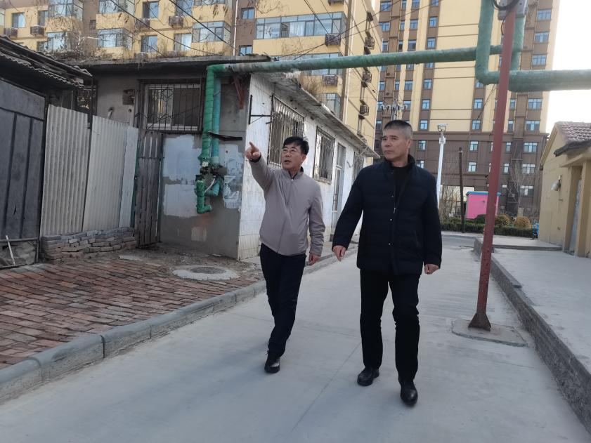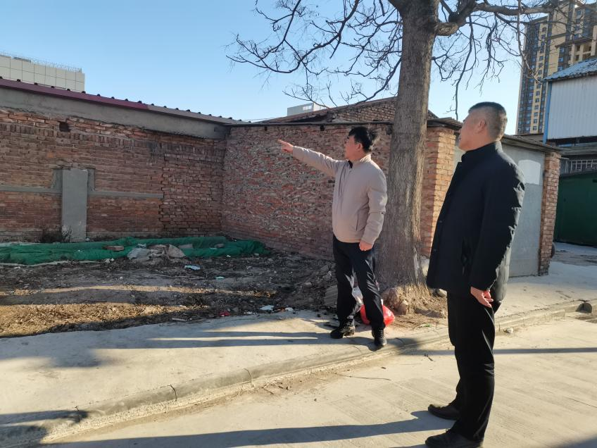12月2日,芦台街道党工委书记李贺喜,党工委副书记、办事处主任王树来研究永兴社区违建拆除工作。