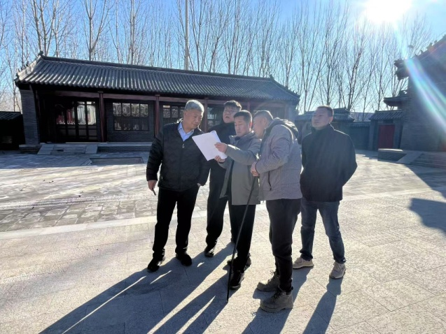 12月5日,宁河镇党委书记李红军带队考察渠梁书院项目,与施工方、设计方一同进行查看施工进度和完成情况。