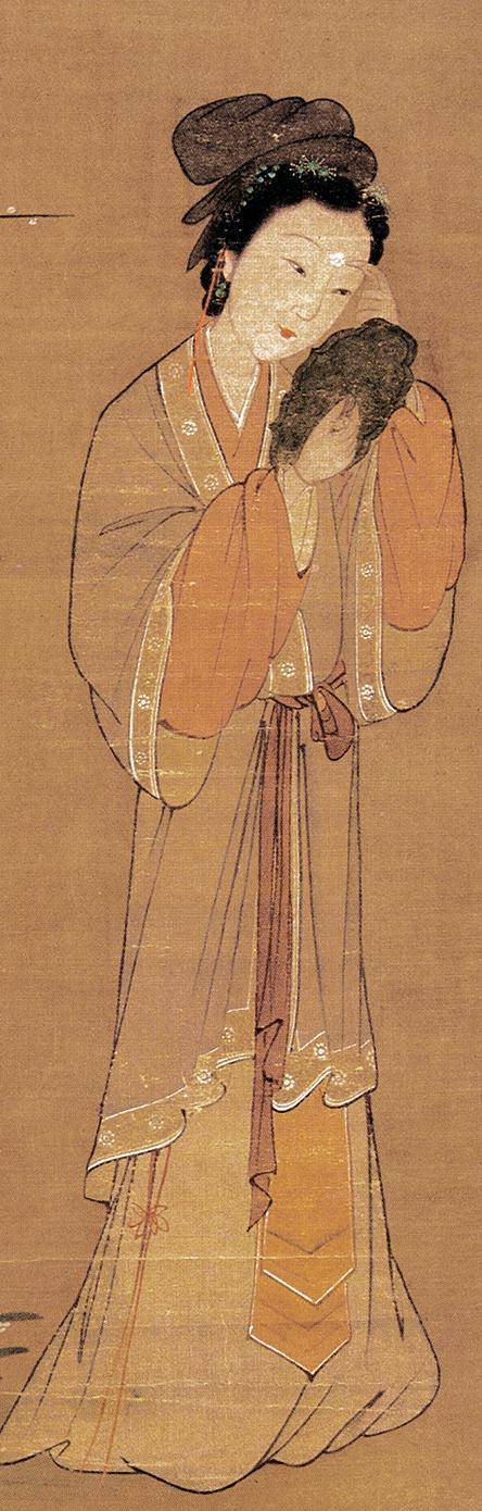 仔细研究之后,他们得出这样一个结论:我们所看到的这幅画的装裱运用的是一种名叫“挖嵌”的技巧,也就是说,画中的仕女是从另一幅画中剪裁下来,重新嵌入新的绢底,然后用墨线掩盖接痕,再补画出与之相配的背景,使之成为一幅新的作品。