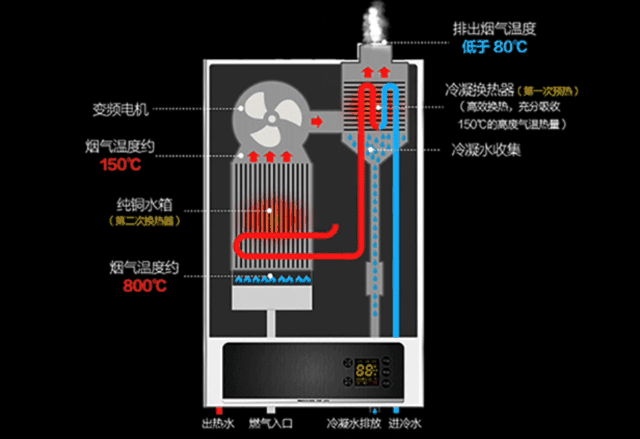 优势及使用场景:这种设计可以使氧气更充足,天然气燃烧得更充分,从而提高热效率,减少废气排放。此外,下置风机在安全方面更有保障,如遇到室外风力极大的情况,由于是密闭的,不会发生烟气倒灌的情况。