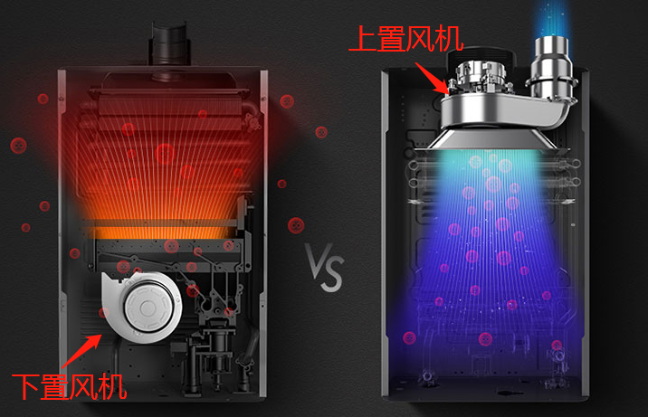 原理:上置式风机通常安装在热水器的顶部,通过顶部进风口吸入空气,然后将空气送入燃烧室进行燃烧。