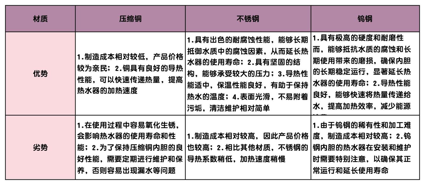 除了安全性,我们在选购时还需要注意以下几个关键部件的材质,才能更好地保证热水器的使用寿命,降低我们的维修成本。
