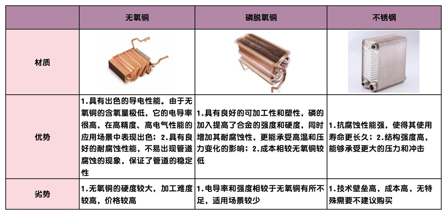 热交换器也叫换热器或者水箱,是最核心的组件之一。如果热交换器的材质不好,不仅会影响到加热性能还可能出现腐蚀漏水等情况。常见的热交换器材质主要有无氧铜、磷脱氧铜和不锈钢。