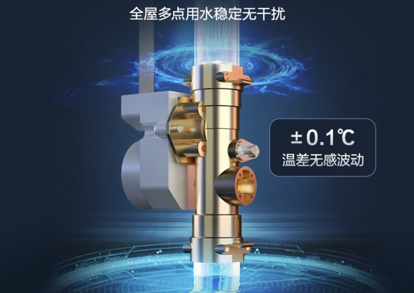 优势:是目前控温方式最为先进的技术。水量伺服器可以根据进水量主动检测并调整水量,同时与燃气比例阀协调,实现精准的恒温效果。在高楼、老小区等水压不稳定的地方,使用水量伺服器技术的热水器能够提供更稳定的水温。此外,它还能有效避免家中多点用水时出现忽冷忽热的情况。