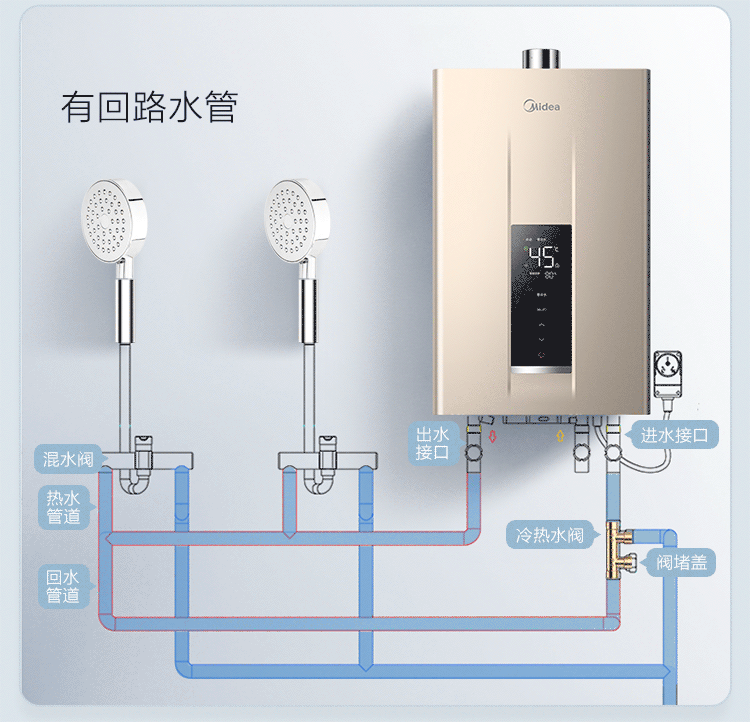 2.安全性强,节能效果好:美的这款燃气热水器还具有多重防护功能,如熄火保护、过热保护、防冻保护等,确保了使用过程中的安全可靠。同时,它采用了高效的储热材料和节能设计,使得热水可以在短时间内达到预设温度,避免了长时间等待热水的情况,并且减少了能源的浪费。