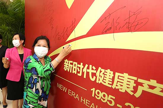 一部浓缩了岁月印记的回顾短片,带领大家重温了公司25年来历经的风雨、播撒的欢笑、收获的成长。中国新时代控股集团有限公司党委书记、董事长,新时代健康产业(集团)有限公司董事长刘国平;新时代健康产业(集团)有限公司原党委书记、总经理黄永刚;公司专家顾问委员会代表赵霖、袁秀英、鲍善芬;国珍市场发展咨询委员会代表赵秀玲、刘洵、王爱芹,通过视频向公司送来了25岁生日的诚挚祝福,表达了对公司未来发展的坚定信心和美好期望。