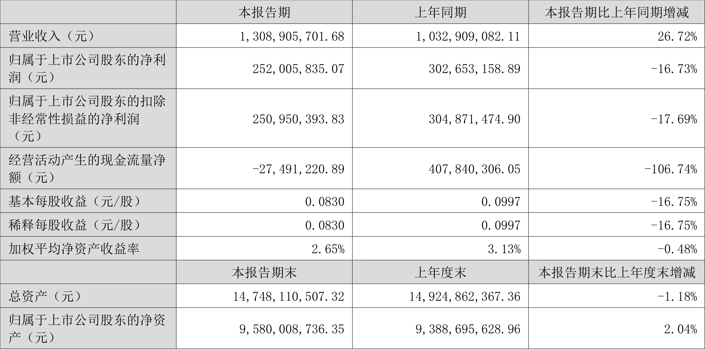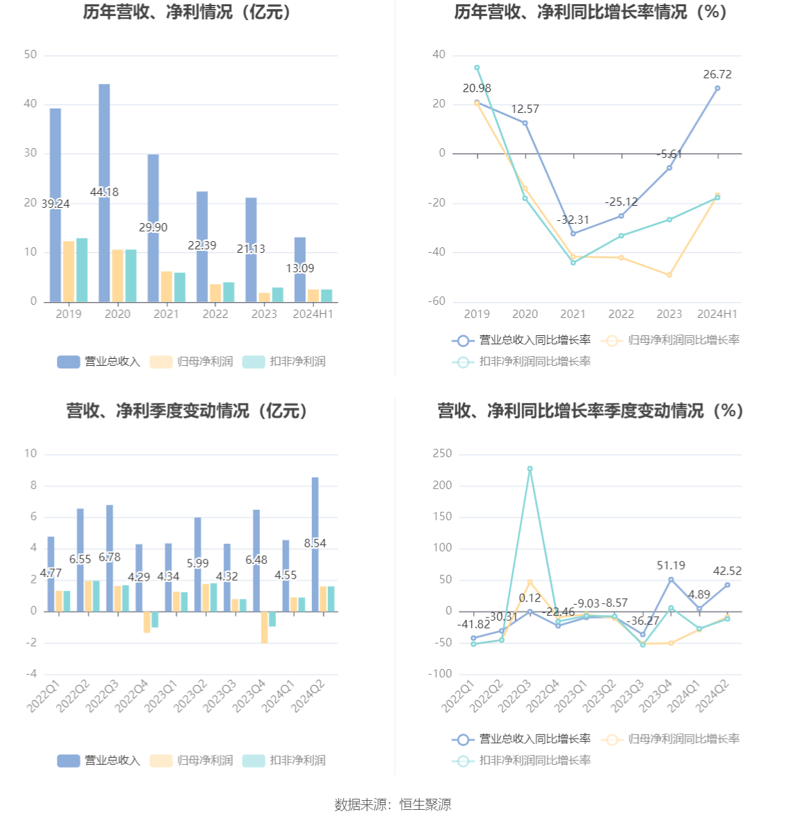 根据半年报,公司第二季度实现营业总收入8.54亿元,同比增长42.52%,环比增长87.80%;归母净利润1.61亿元,同比下降8.33%,环比增长77.49%;扣非净利润1.61亿元,同比下降11.47%,环比增长77.49%。