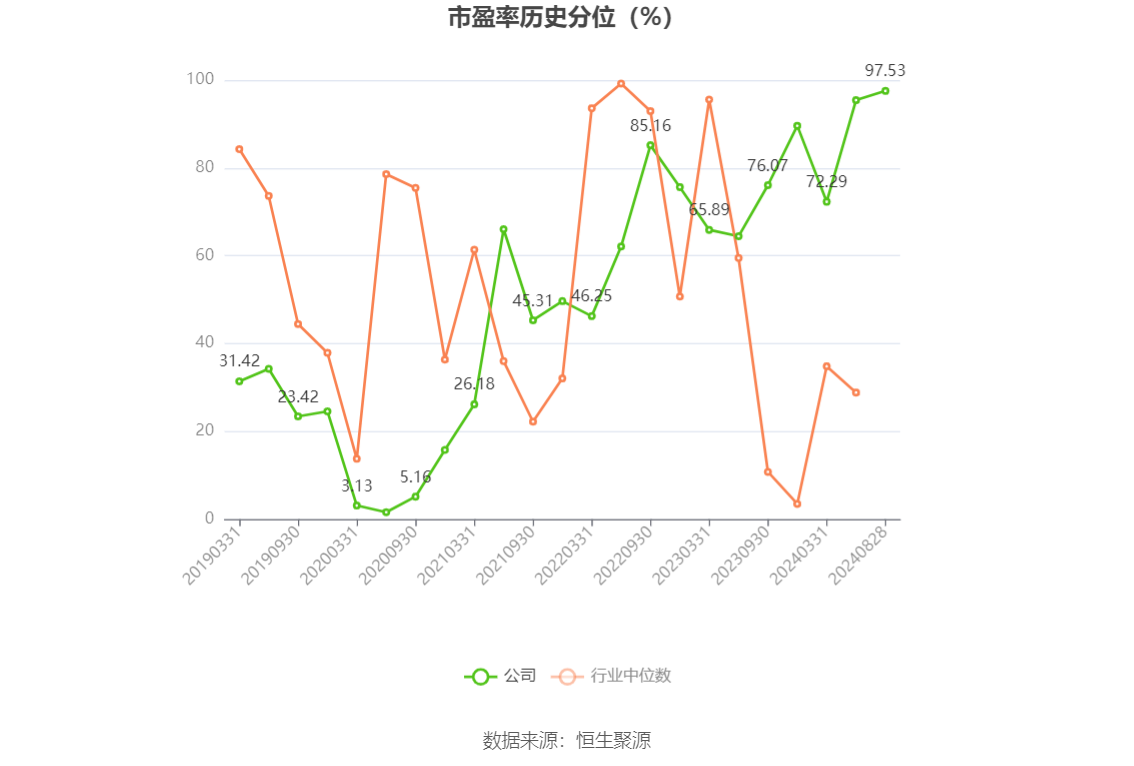 市盈率为负时,不显示当期分位数,会导致折线图中断。
