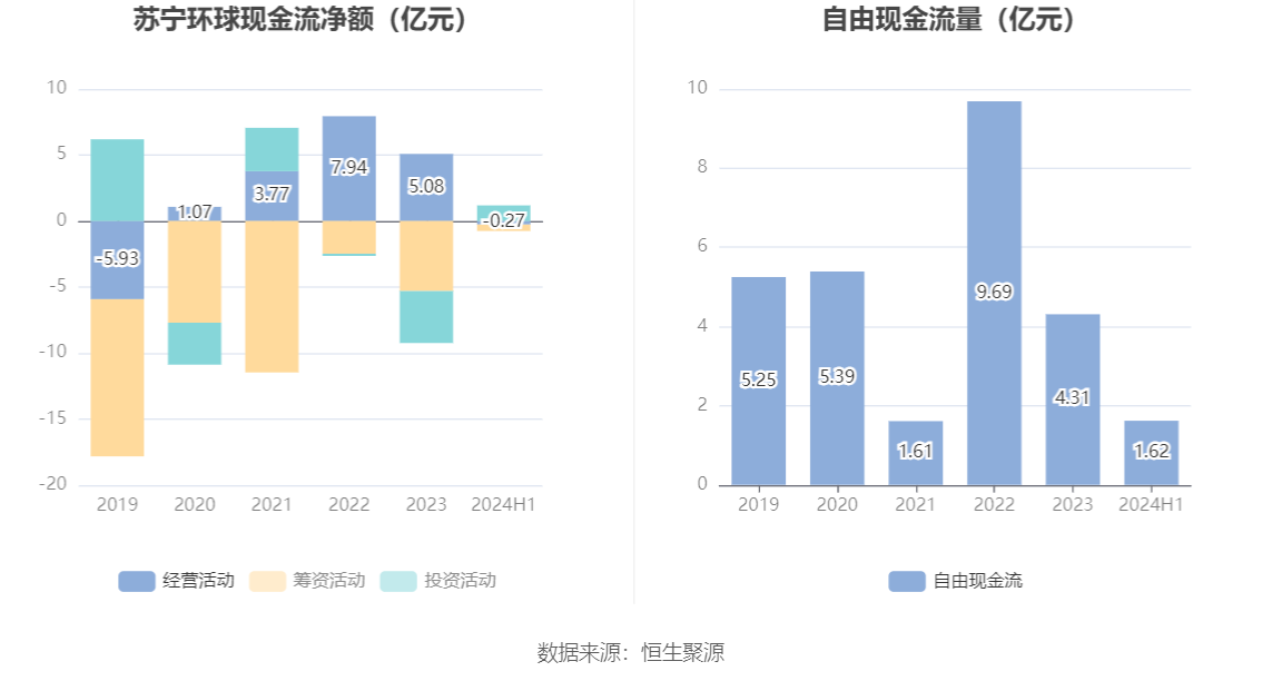 进一步统计发现,2024年上半年公司自由现金流为1.62亿元,相比上年同期下降35.79%。