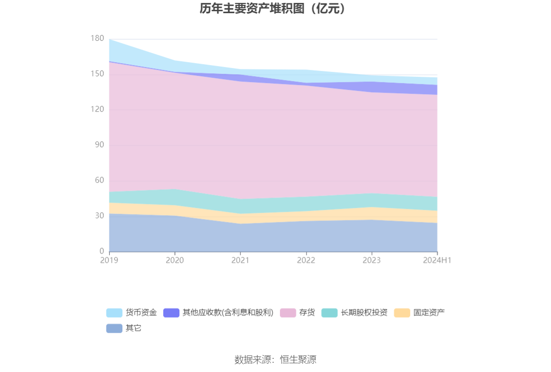 资产重大变化方面,截至2024年上半年末,公司存货较上年末增加1.12%,占公司总资产比重上升1.33个百分点;预付款项较上年末减少50.46%,占公司总资产比重下降1.19个百分点;货币资金较上年末增加21.30%,占公司总资产比重上升0.80个百分点;其他应收款(含利息和股利)较上年末减少8.43%,占公司总资产比重下降0.45个百分点。