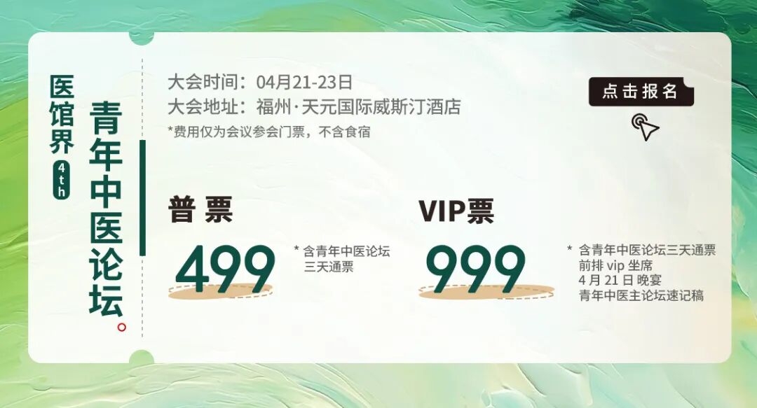 不论你是青年中医,中医学者或是中医创业者,4月21日—23日,第四届医馆界青年中医论坛即将启航,一起相约福州,共同成长!