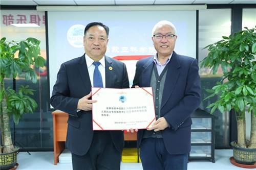 国际欧亚科学院中国科学中心常务副主席张景安向仇保兴院士颁发国际欧亚科学院人民院士专家服务中心主任证书