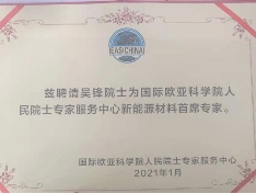 新能源材料首席专家吴锋院士证书