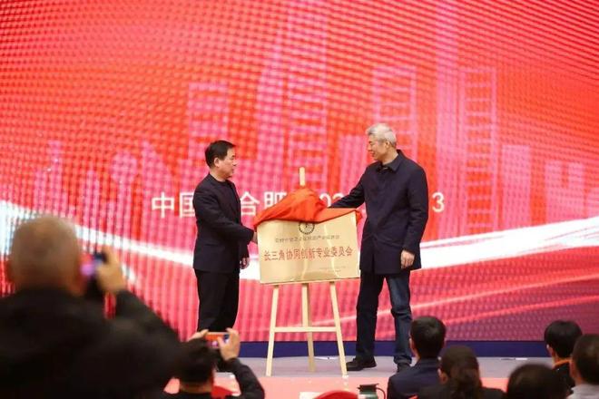 高俊文会长和长三角创新协同专业委员会当选主任委员、安徽电信规划设计有限责任公司总经理王立功为专委会揭牌,虞海宁执行会长兼秘书长向王立功主任委员颁发任职证书。