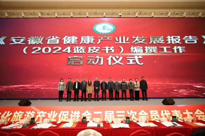 陈强、高俊文、张振粤、徐雪晖、王信、刘健、王云波、王大军、虞海宁、杨晓冬、董亚杰、董鑫、夏云波等领导登台启动了《安徽省健康产业发展报告》(2024蓝皮书)编撰工作。