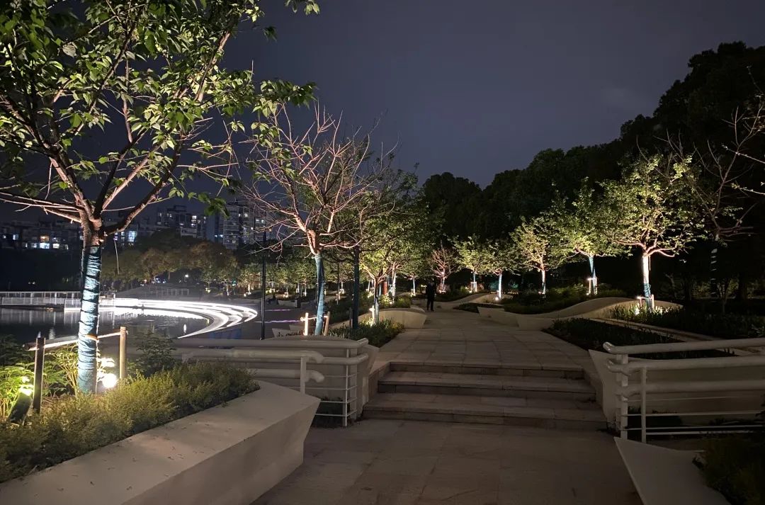 同时,对道路界面、主要出入口、中轴线及滨水区灯光重点塑造,同步提升铺装、小品、设施,推行公共空间24小时开放制,着力塑造一个生态为底色、园艺为特色、共享为亮色的高品质城市活力社区公园。