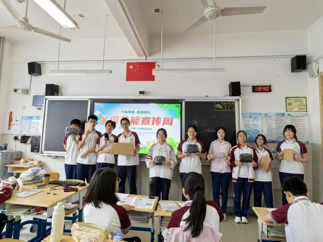 为检验节能知识学习成效,学校组织了线下节能知识竞赛。竞赛题目涵盖节水节电、垃圾分类、可再生能源等内容,活动现场还发放了节能宣传活动纪念笔记本、折叠包、雨伞、LED多功能台灯作为参与奖励,寓教于乐的方式让环保理念深入人心。