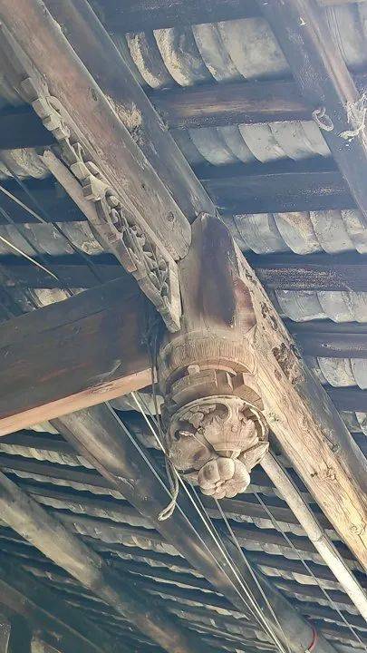 周文富老宅,房梁上,锤花柱的花纹依旧清晰可见(丁平 摄)