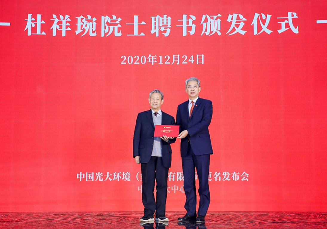 李晓鹏为中国工程院院士、中国“无废城市”建设的主要发起人杜祥琬院士、陈勇院士分别颁发聘书,邀请二位院士担任光大环境科技顾问。