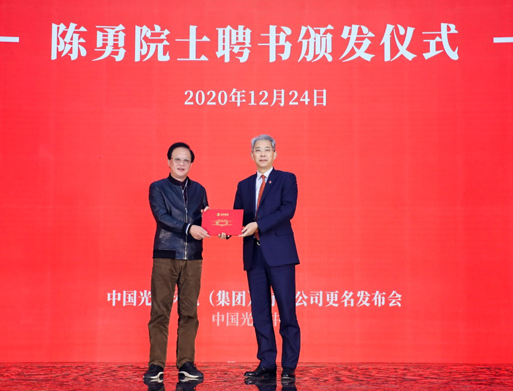光大集团党委书记、董事长李晓鹏为中国工程院院士陈勇颁发聘书