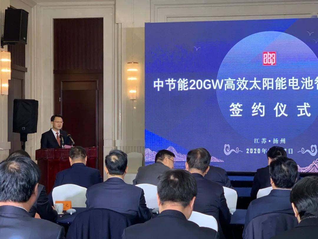 方桂林在致辞中首先代表扬州市政府对项目的正式签约表示祝贺。他说,高邮是扬州的工业重镇,工业开票销售正向千亿迈进,光伏企业总数占扬州全市的半壁江山,高邮经济开发区的光储充产业园是江苏省特色创新(产业)示范园区。20GW高效太阳能电池智能制造项目正式签约落户,必将进一步提升高邮光伏产业的发展能级,助力扬州和高邮经济社会的高质量发展。