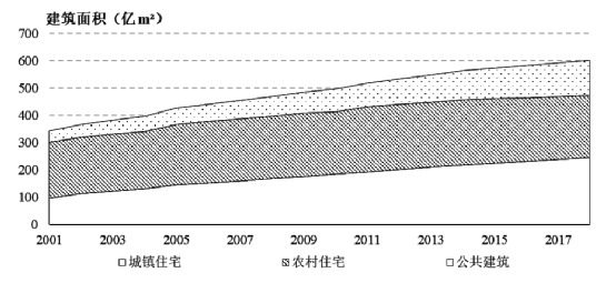 每年大量建筑的竣工使得我国建筑面积的存量不断高速增长,2018年我国建筑面积总量约601亿m2,其中:城镇住宅建筑面积为244亿m2,农村住宅建筑面积229亿m2,公共建筑面积128亿m2,北方城镇采暖面积147亿m2。
