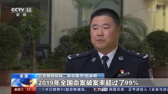公安部刑侦局二级巡视员 王永明: 2019年全国命案破案率超过了99%,有25个省区市创历史最好成绩,这些命案积案得以成功侦破,不仅回应了人民群众的期待要求,而且维护了法律的尊严,彰显了公平正义,不仅提正了公安队伍战斗士气,而且带动了科技手段的建设应用,提升了公安机关的整体作战能力。
