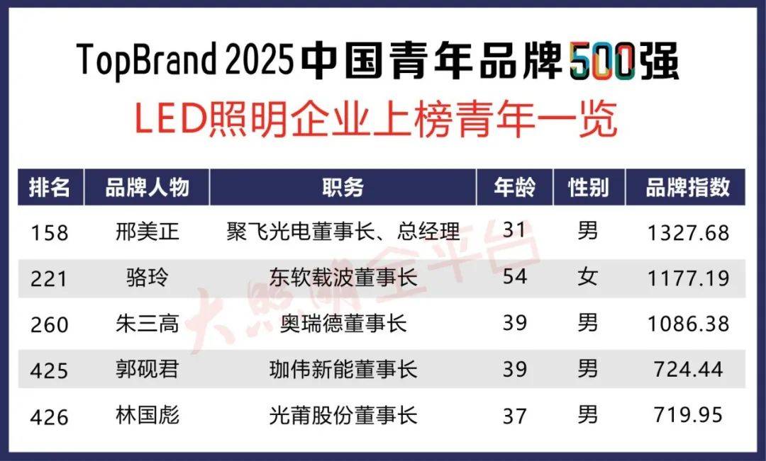 ▲《TopBrand 2025中国品牌青年500强》LED照明企业上榜青年一览